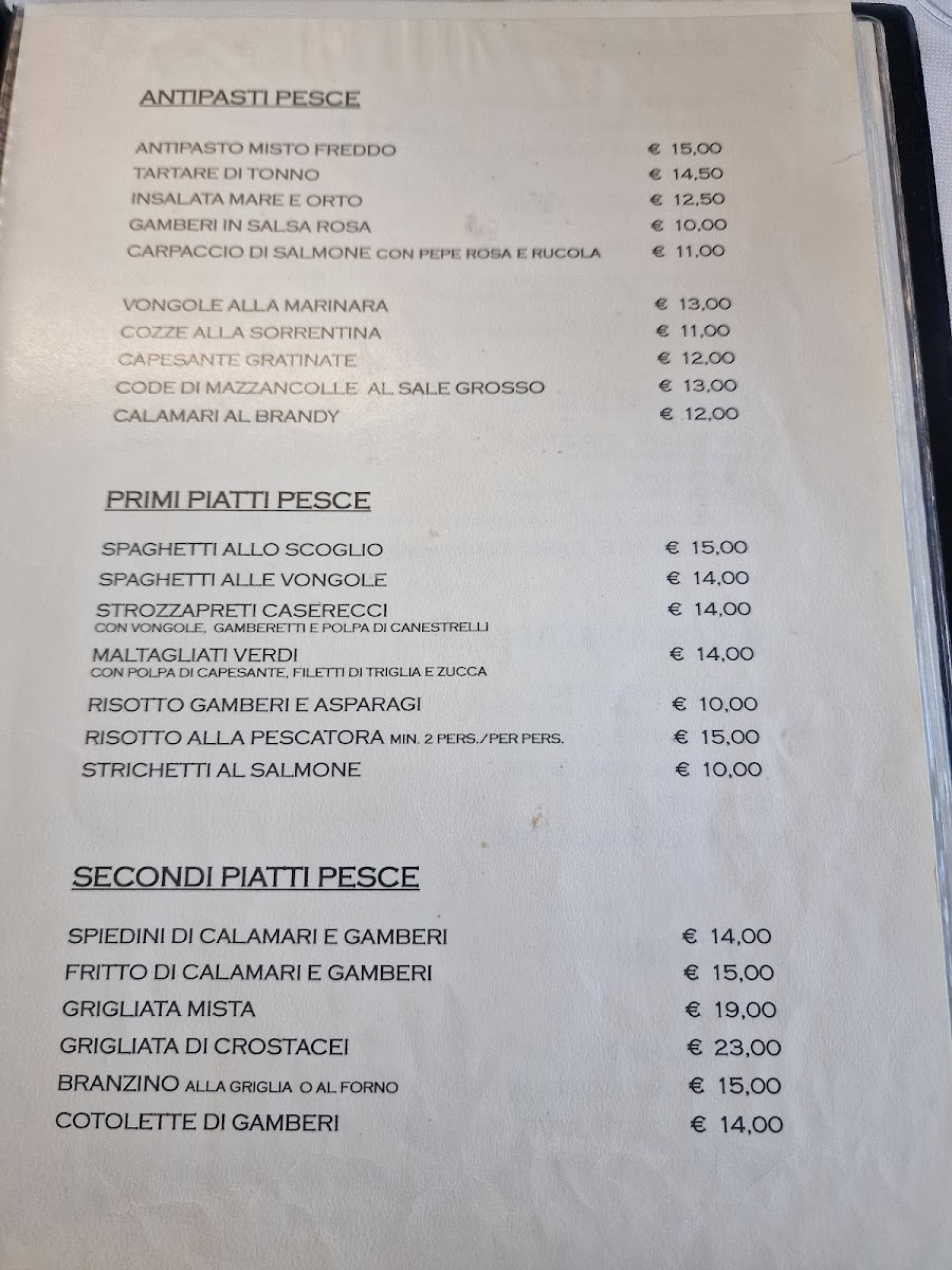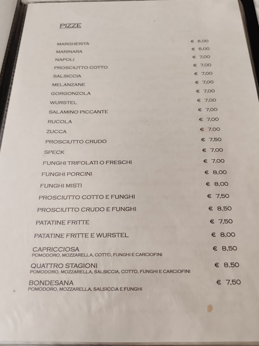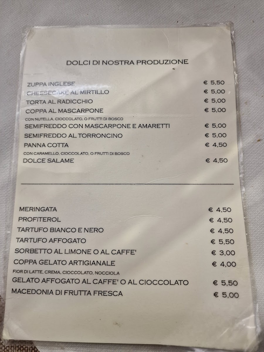 Ristorante Pizzeria Cafe' del Ricordo Menu